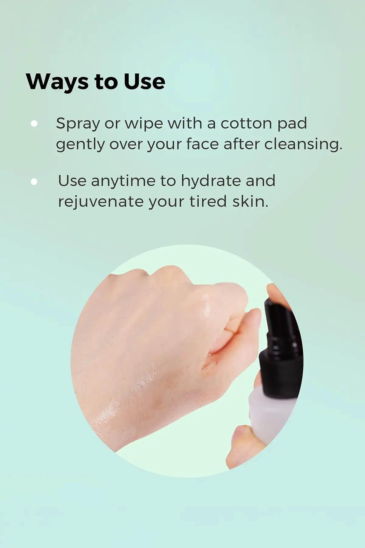After cleansing, spray the toner onto a cotton pad and gently wipe across your face, avoiding the eye and mouth area. You can also mist directly onto the skin throughout the day for a quick CENTELLA hydration boost.